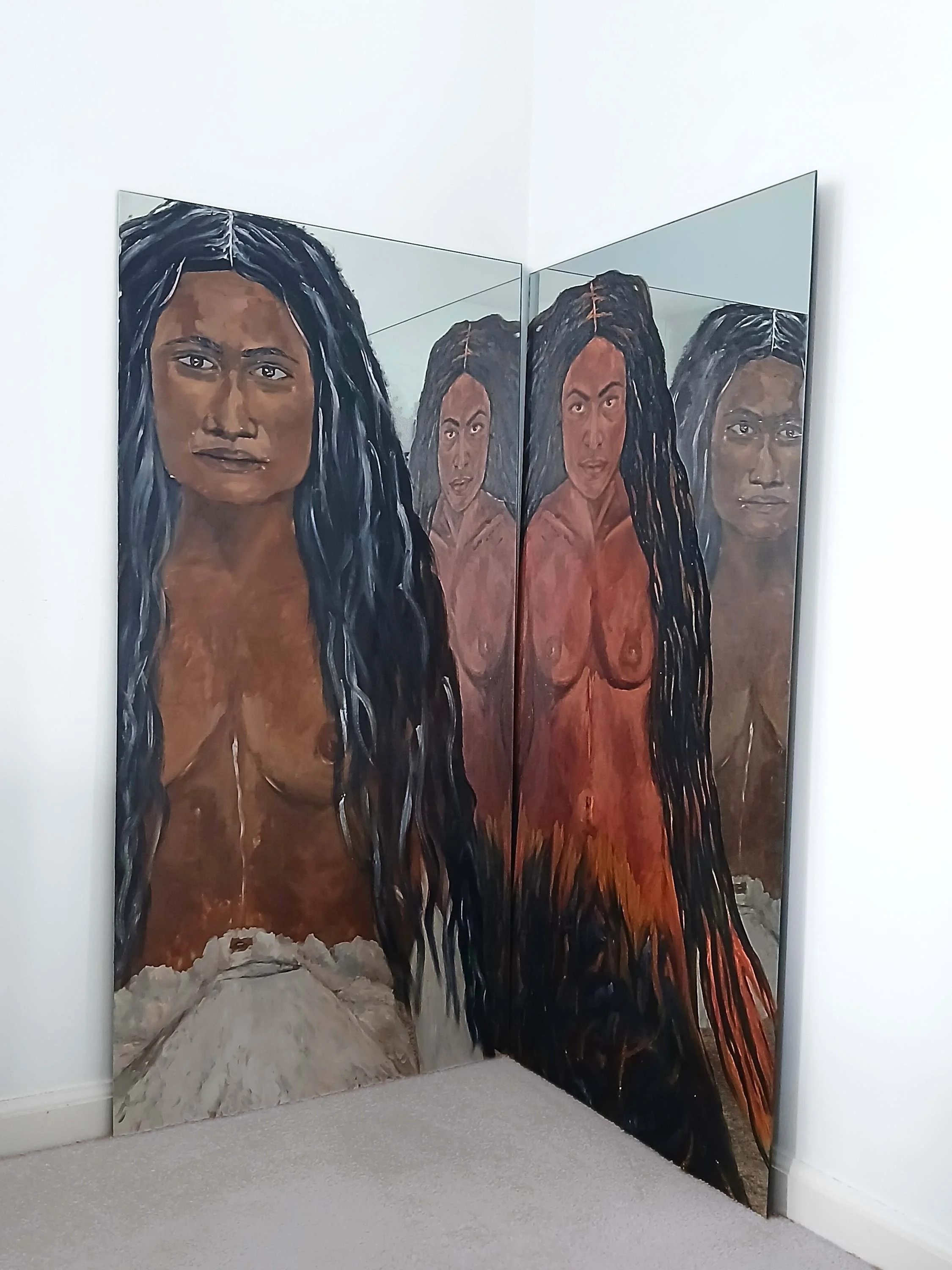 Painting the subjects on mirror allows personal reflection and the ability to go deeper into the work, connecting to a parallel world where you can find the energy needed to guide you along your own path.